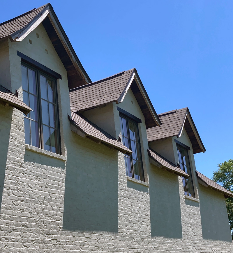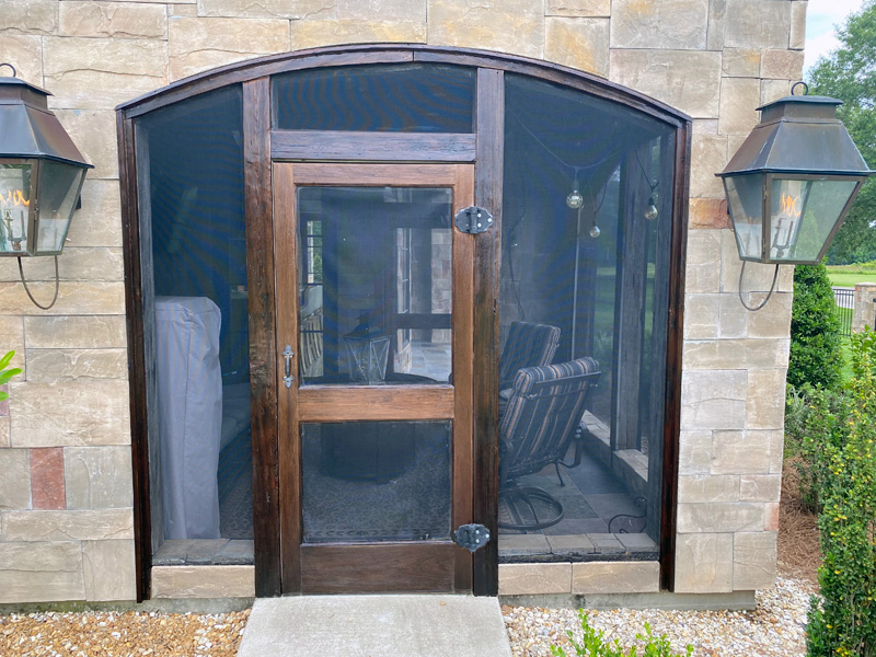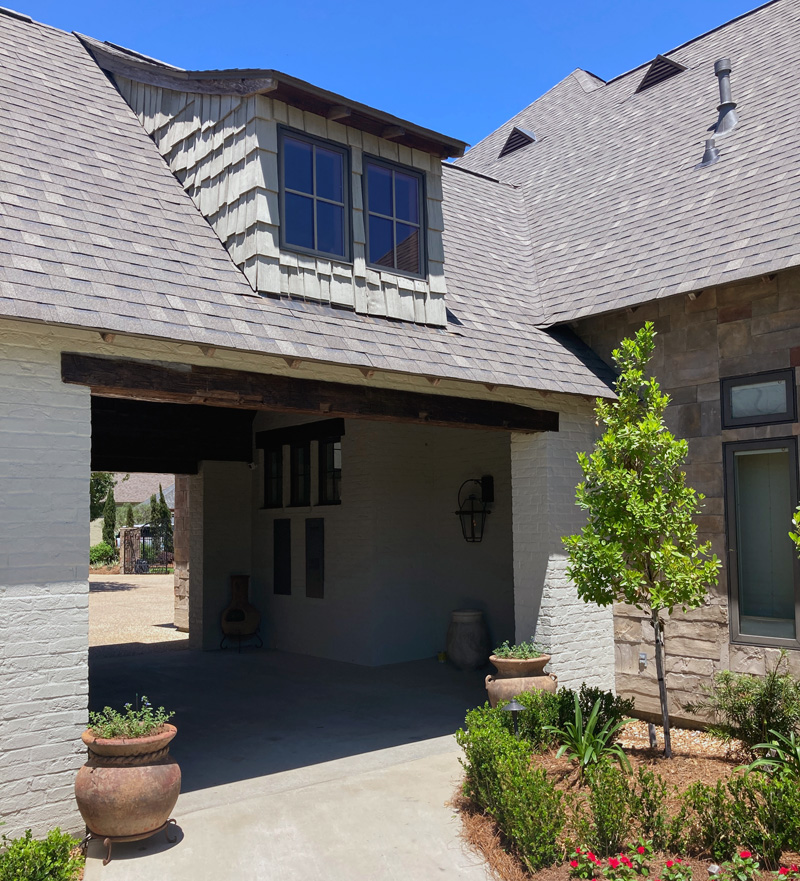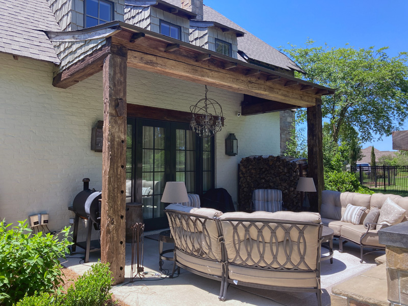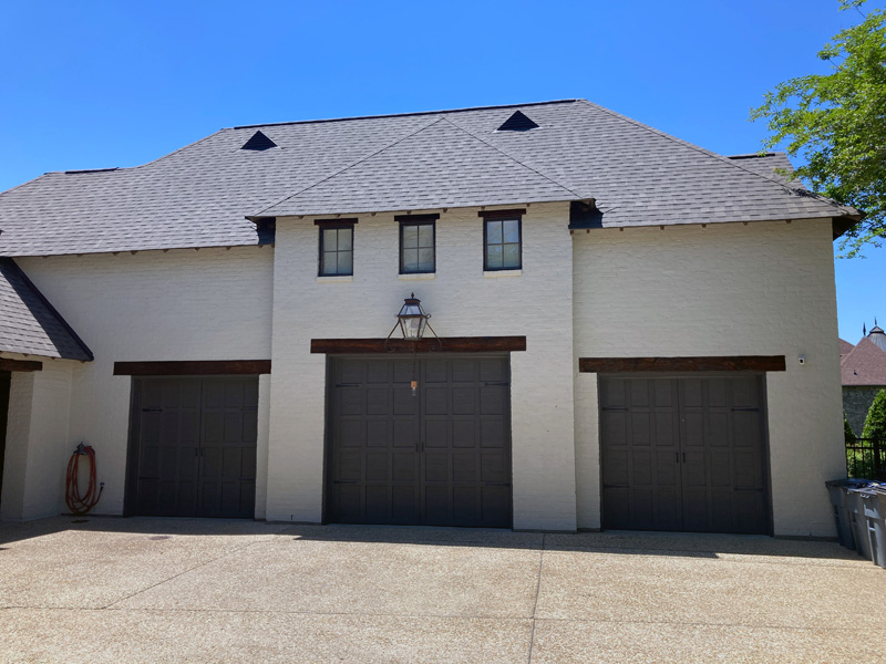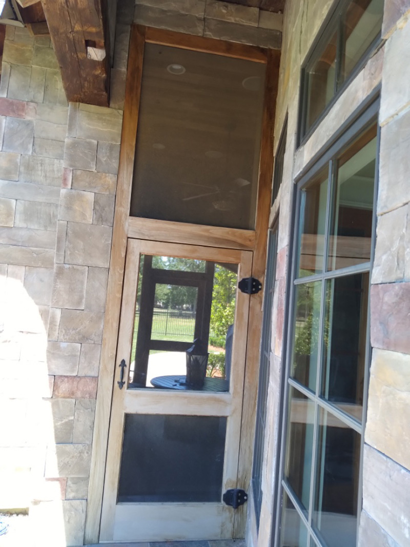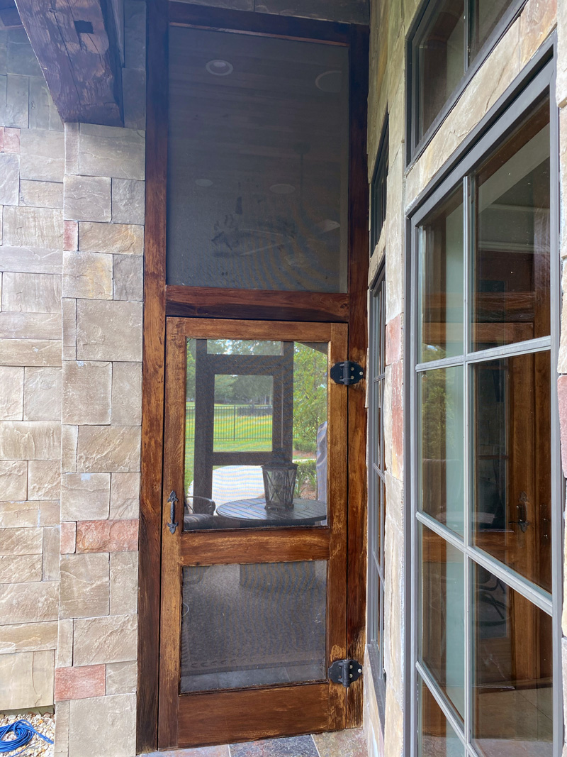 Stain exterior doors, windows and beams.