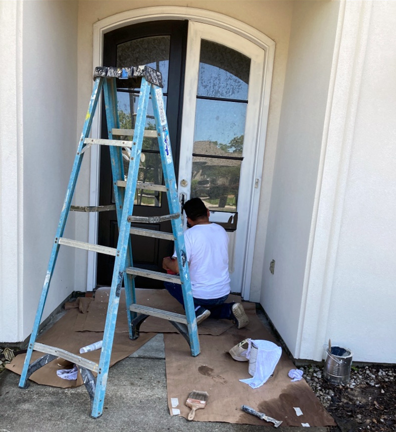 Repaint Exterior including entry door, garage door, windows, and shutters.