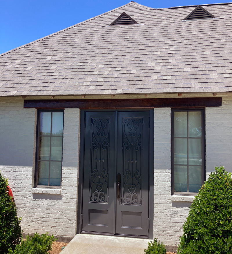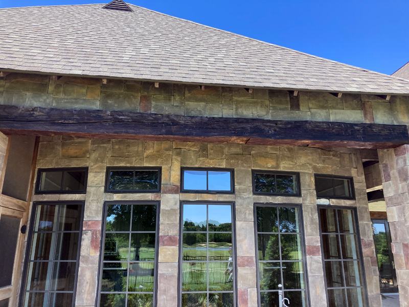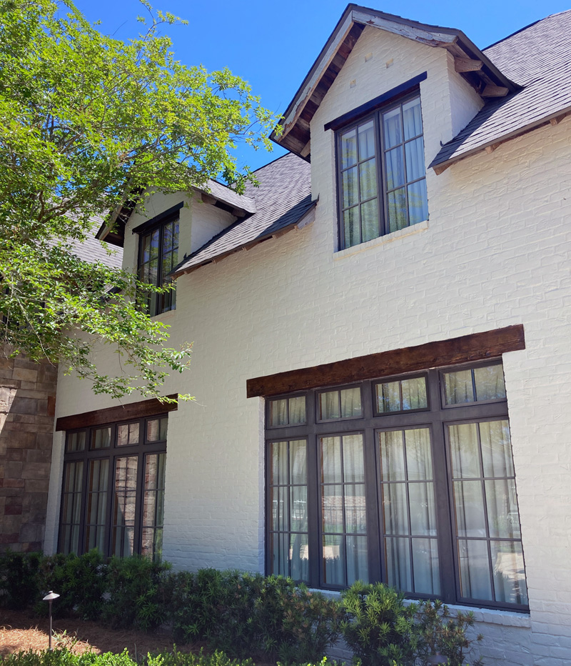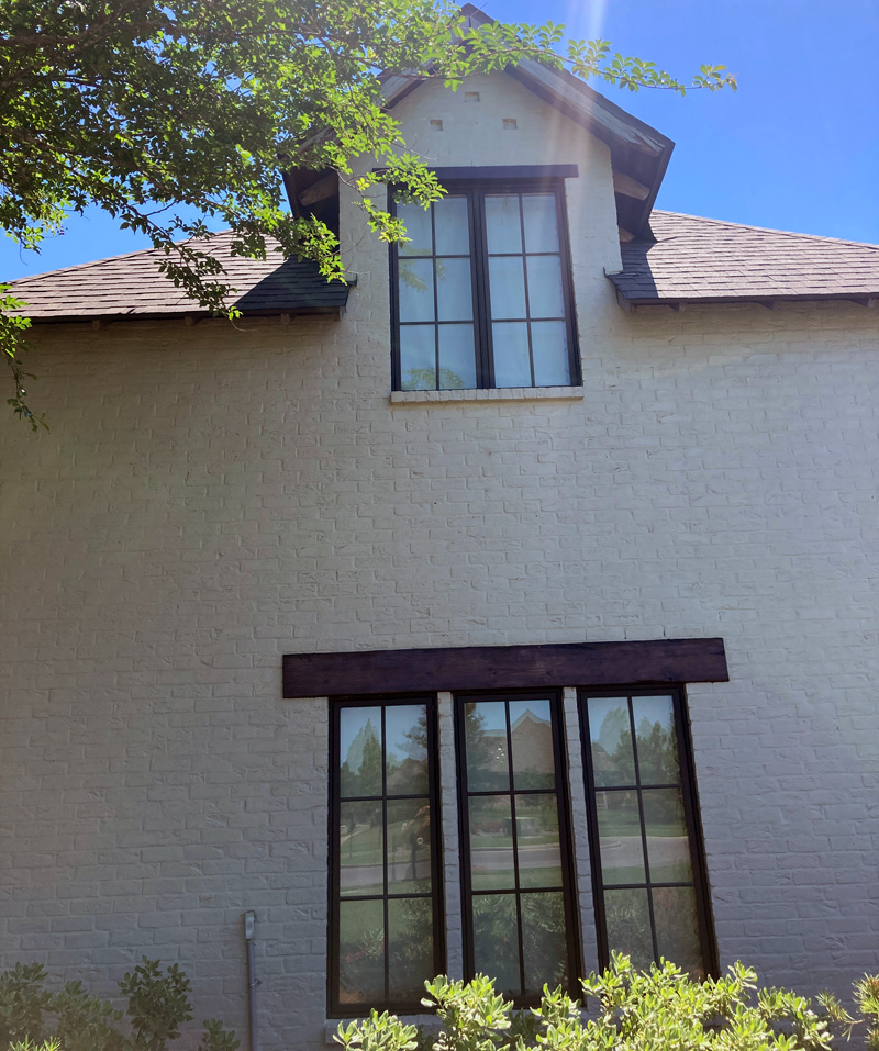 Stain exterior doors, windows and beams.